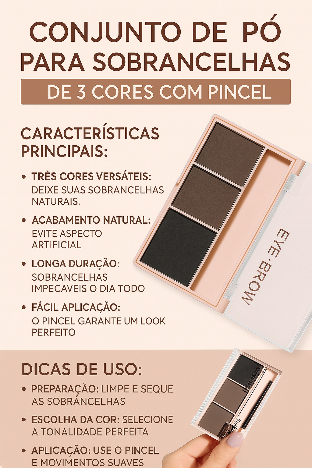 Sombra de pó de sobrancelha de três cores, pó tridimensional e formato natura